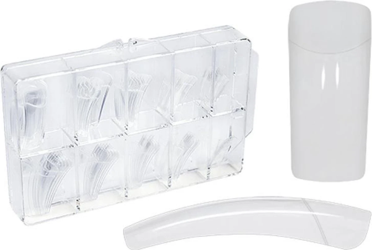 - ✔ Inhoud kunstnagels set: 100 Nagel Tips Transparant + 5 ml Nagellijm + Nagelvijl + Tipknipper