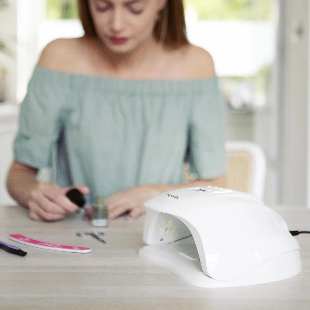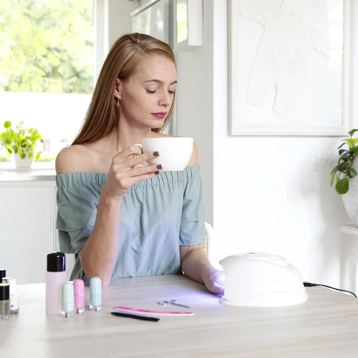 De UV-lampen simuleren natuurlijk wit licht wat schade voorkomt aan je nagels en huid. Dankzij het veilige half-gesloten ontwerp zijn de ogen en huid beschermd tegen blootstelling aan UV-licht. Heb je een gevoelige huid, of vind je nageldrogers doorgaans pijnlijk, dan kun je gebruik maken van de low-heat functie. Daarmee duurt het drogen langer maar bouwt de warmte geleidelijk op zonder plotse warmte pieken. Wanneer de nageldroger dreigt te overhitten schakelt deze automatisch over op low-heat modus totdat de temperatuur is gedaald.