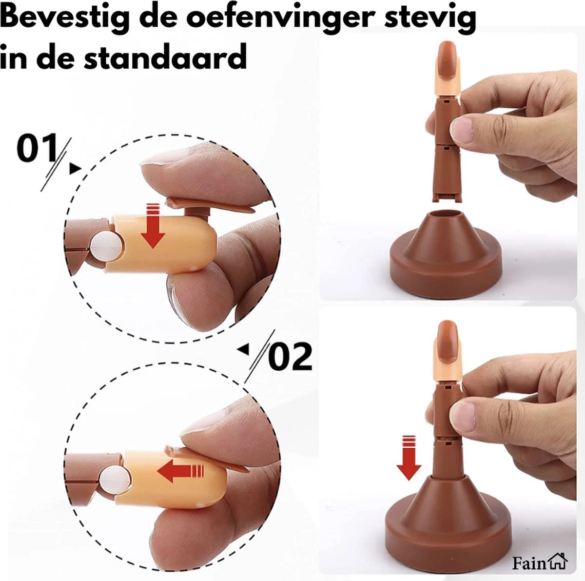 â–¶ Geleverd met: 3 oefenvingers, een standaard en 80 nepnagels (!)