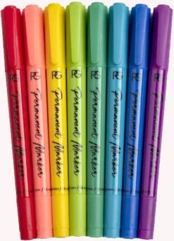De set bevat 8 kleuren: rood, oranje, geel, licht- en donkergroen, blauw en paars