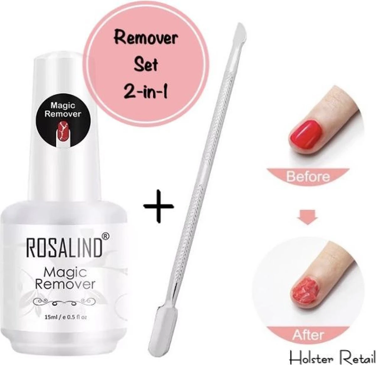 Wacht niet meer tot de gelpolish op de nagels van je tenen of vingers afgeweekt is. Met deze handige gellak remover set bespaar je heel veel tijd. Verwijder eerst de toplaag met een grove gritvijl zodat de substantie makkelijk inwerkt. Breng vervolgens een dikke laag remover aan. Wacht 5 tot 8 minuten. Wanneer de gel bubbelt gaat het de goede kant op. Als het bubbelen gestopt is verwijder je de overgebleven gellak van de nagel met het bokkenpootje. In minder dan 10 minuten heb je de gelpolish verwijdert, zonder schade te brengen aan de natuurlijke nagel.